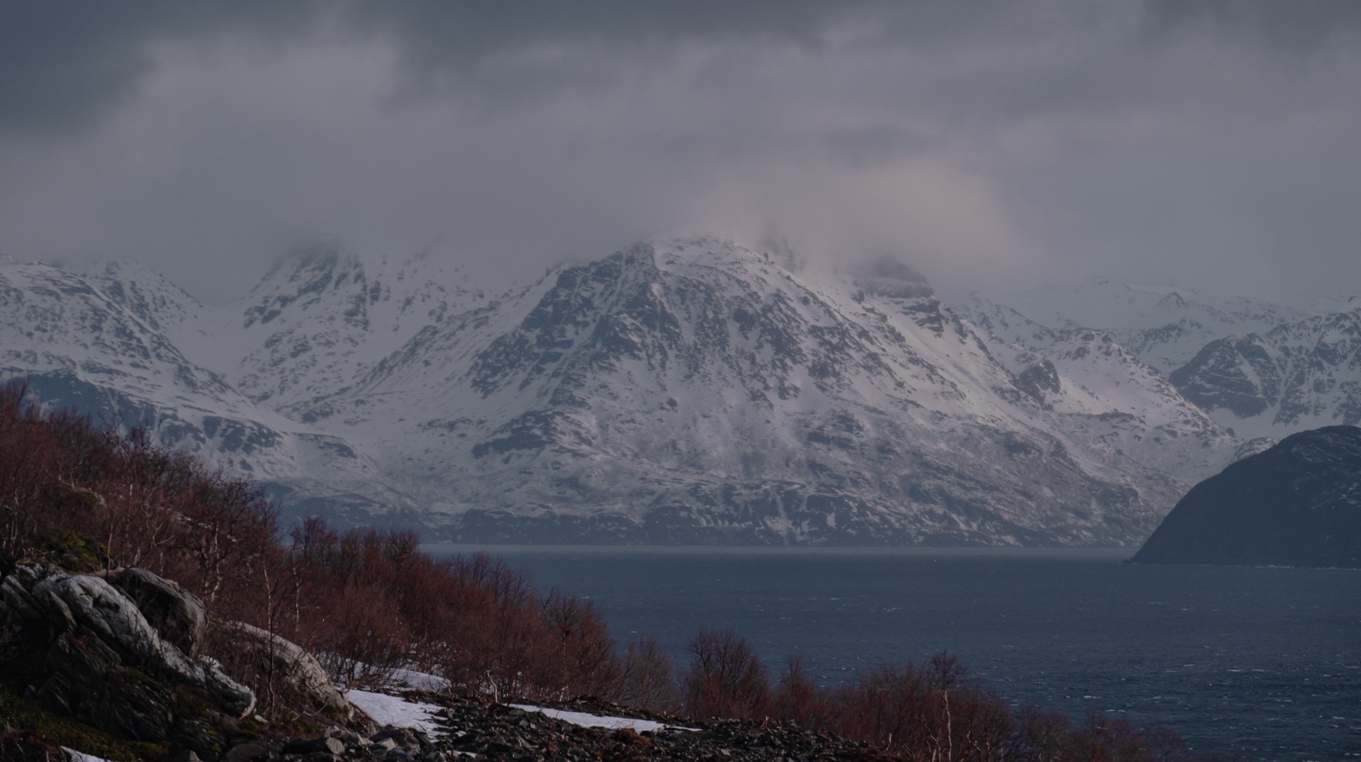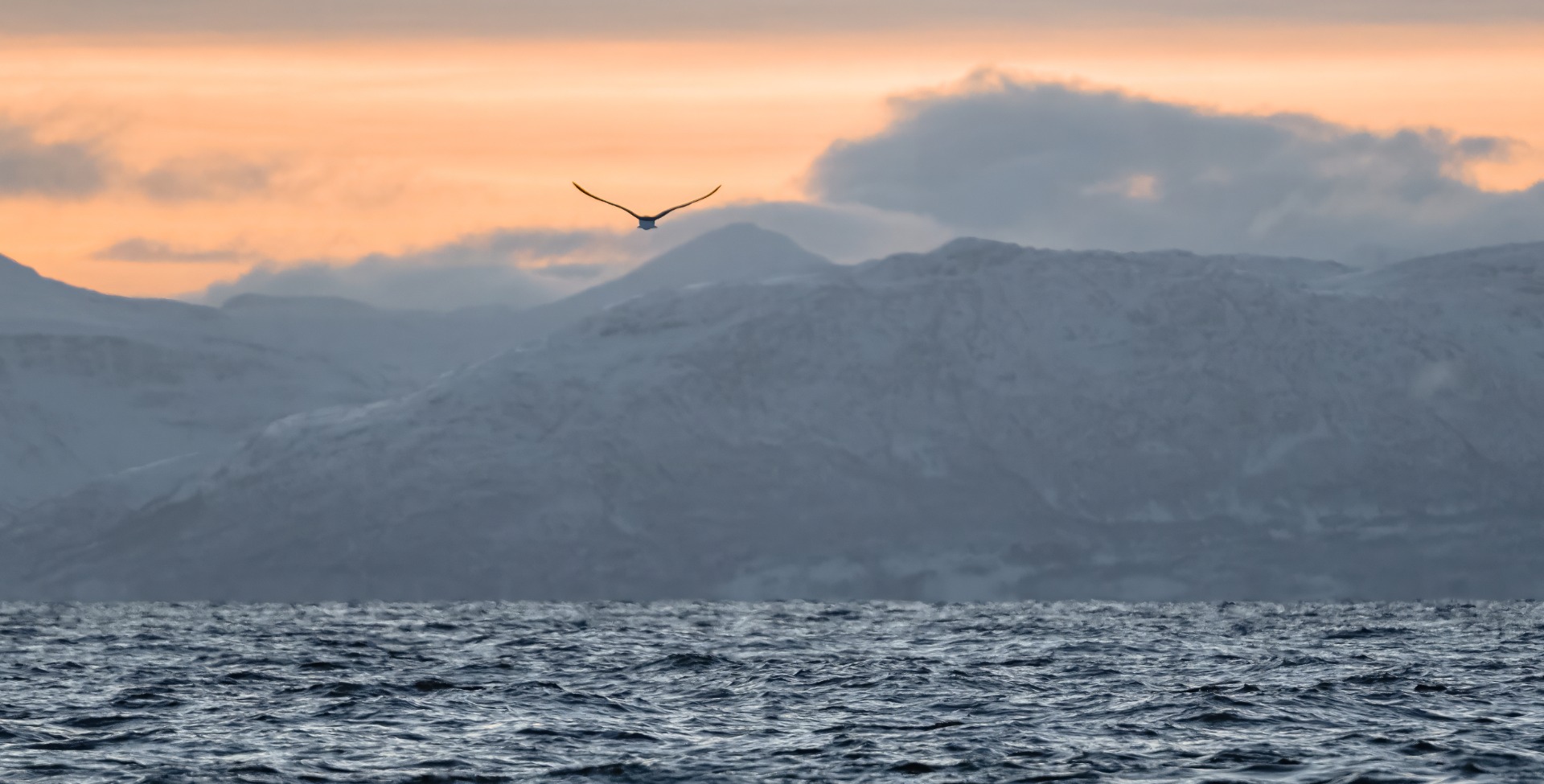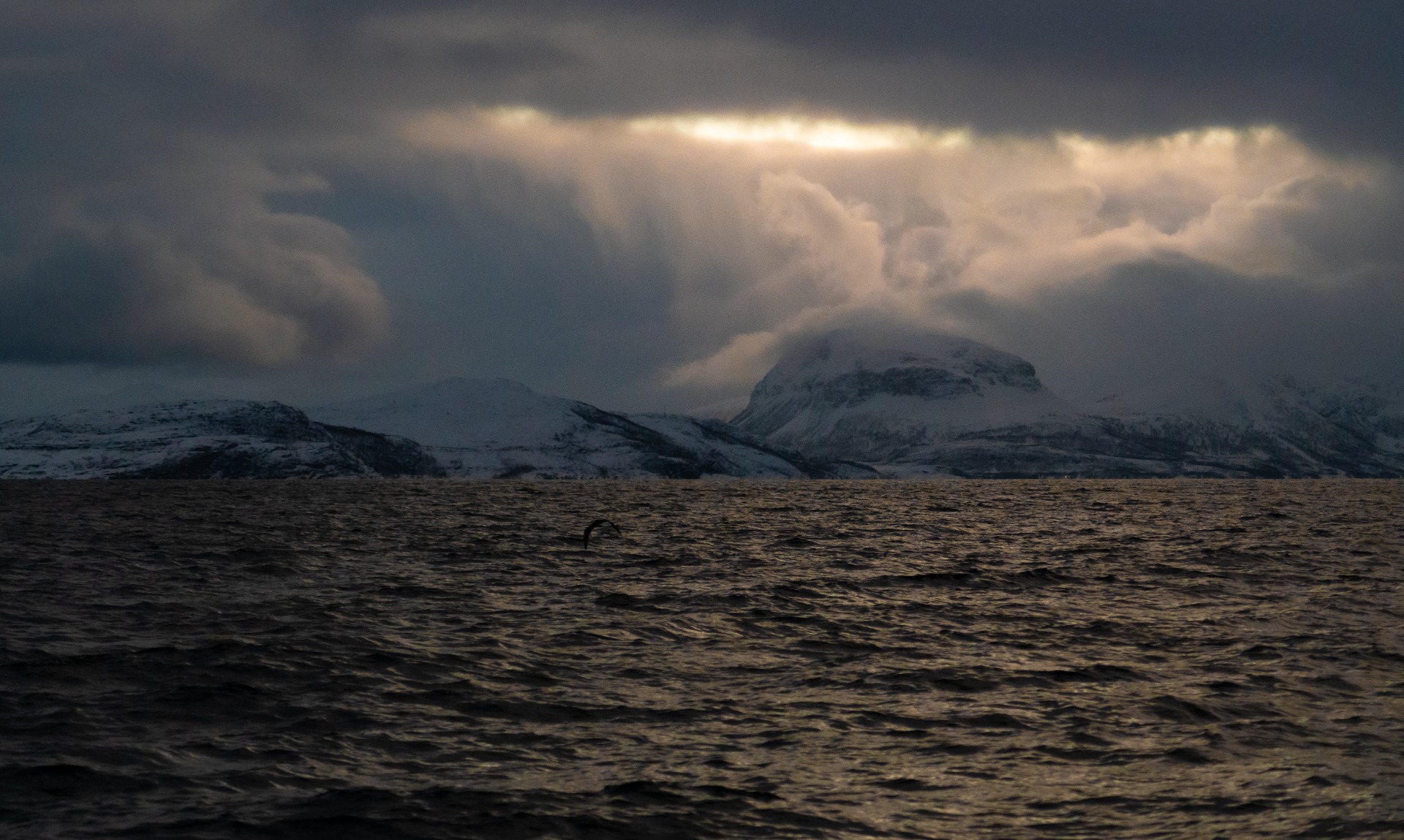 Kaamosajan loppumista odotellessa. Tuntureiden taakse väläytti pilvimassan takana kiusoitteleva aurinko lyhyen säteen jostain kaukaisuudesta etelästä. Mereltä piti samalla kiirehtiä pois, myrsky oli nousemassa nopeasti ja kotiin oli vielä merimaileja riittävästi.