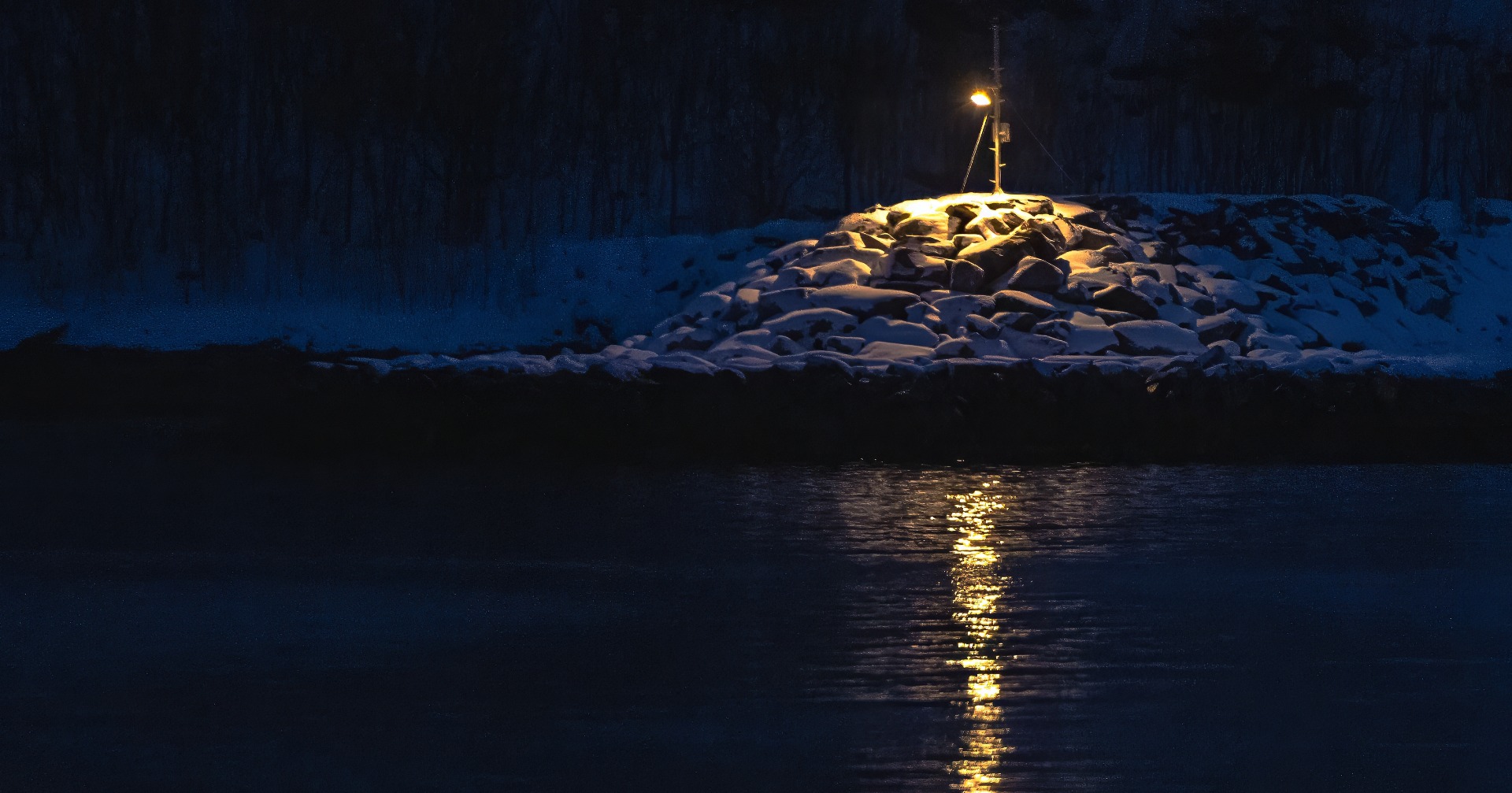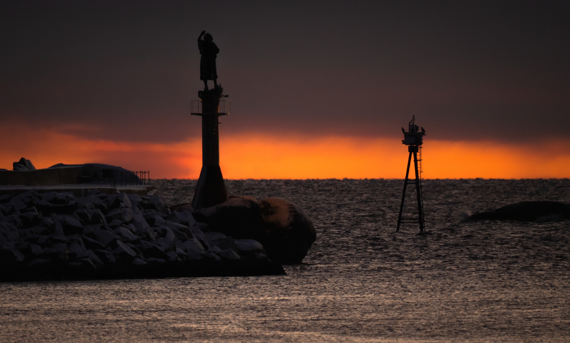 Pimeyttä valaisi aallonmurtajan kotoinen valo joka ohjaa merenkulkijat satamaan.