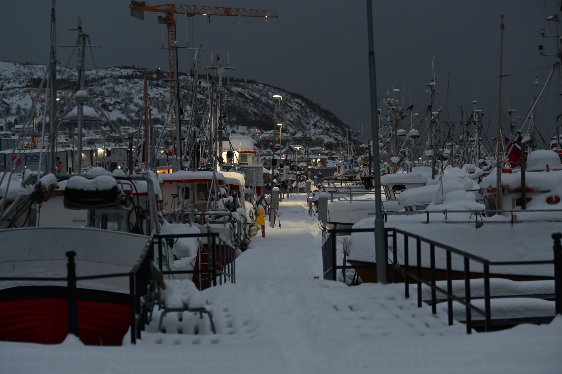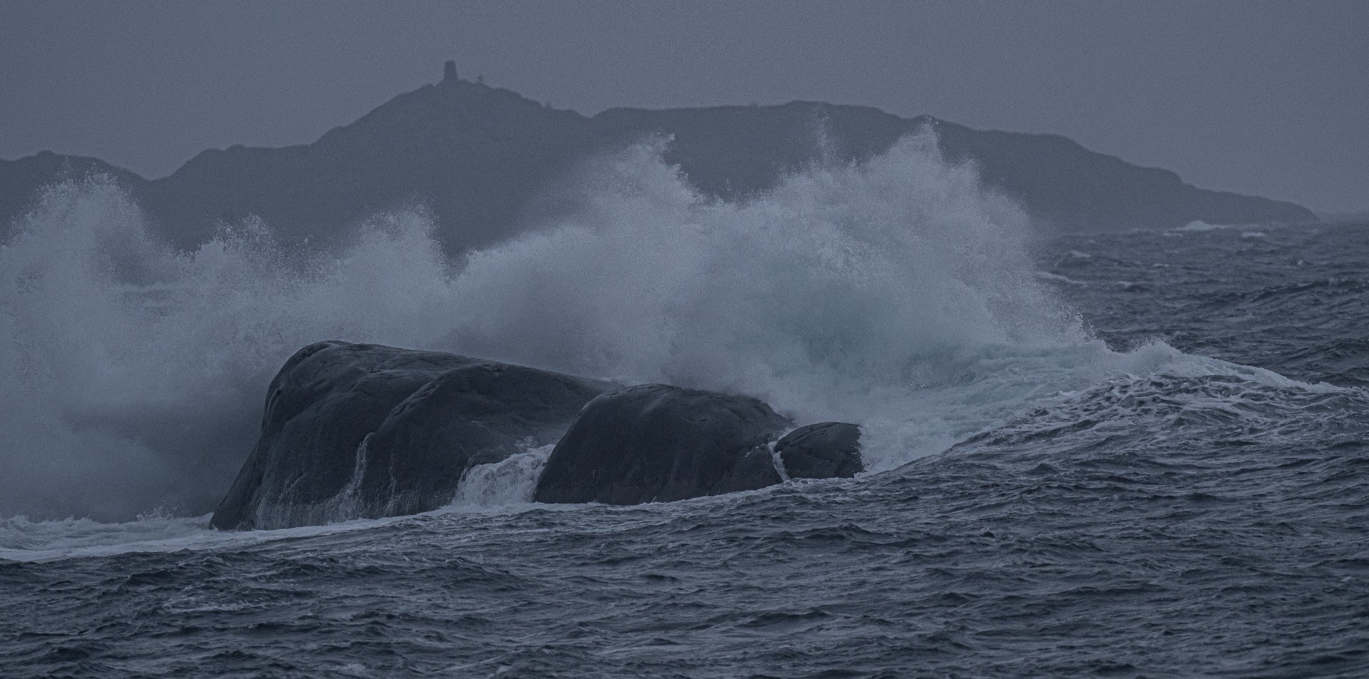 Odotukseni olivat tietysti myös korkealla kuvausvalojen suhteen. Odotin kaamoksessa himmeänä hehkuvaa punaisen ja sinisen valoheijastetta, revontulia, helmiäispilviä meren kuohuvan pinnan yllä. Todellisuuteen heräsin jo ensimmäisen vuorokauden jälkeen. Paksu kaiken kietova merisumu, vinkuva tuuli jonka nopeus normipäivänä oli 10m/s ja joka hetkessä muuttui raivoavaksi myrskyksi lähelle 30m/s. Taivaalta raskaana valuva sade, joka kuitenkin jäädytti veneen kannet ja sillat, vuoritiet jotka ottivat vastaan vesisateen mukanaan tuomat lumirinteet....Aamun parasta oli radion varoitustiedotteet niin meri kuin maa-alueille ja vakikuuluttaja joka lopetti osuutensa aina sanoihin:"Lykke til". Norjalaiset osasivat sanoittaa asiat oikein ja positiivisesti. Tosin paikalliset sanoivat etteivät juuri muistaneet samankaltaista talvea, yhtä tuulista, pimeää ja vetistä. Lämpötila pysytteli jatkuvasti +4-+6 välissä-Ei revontulia, ei heijastevaloa-ei maalla eikä merellä.