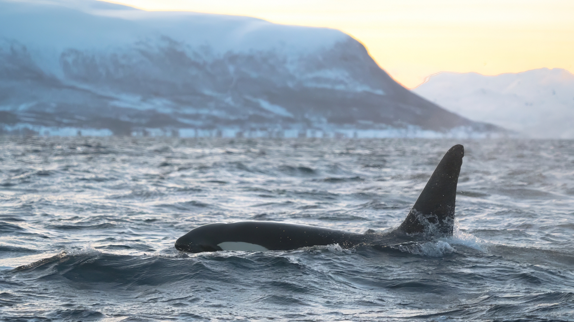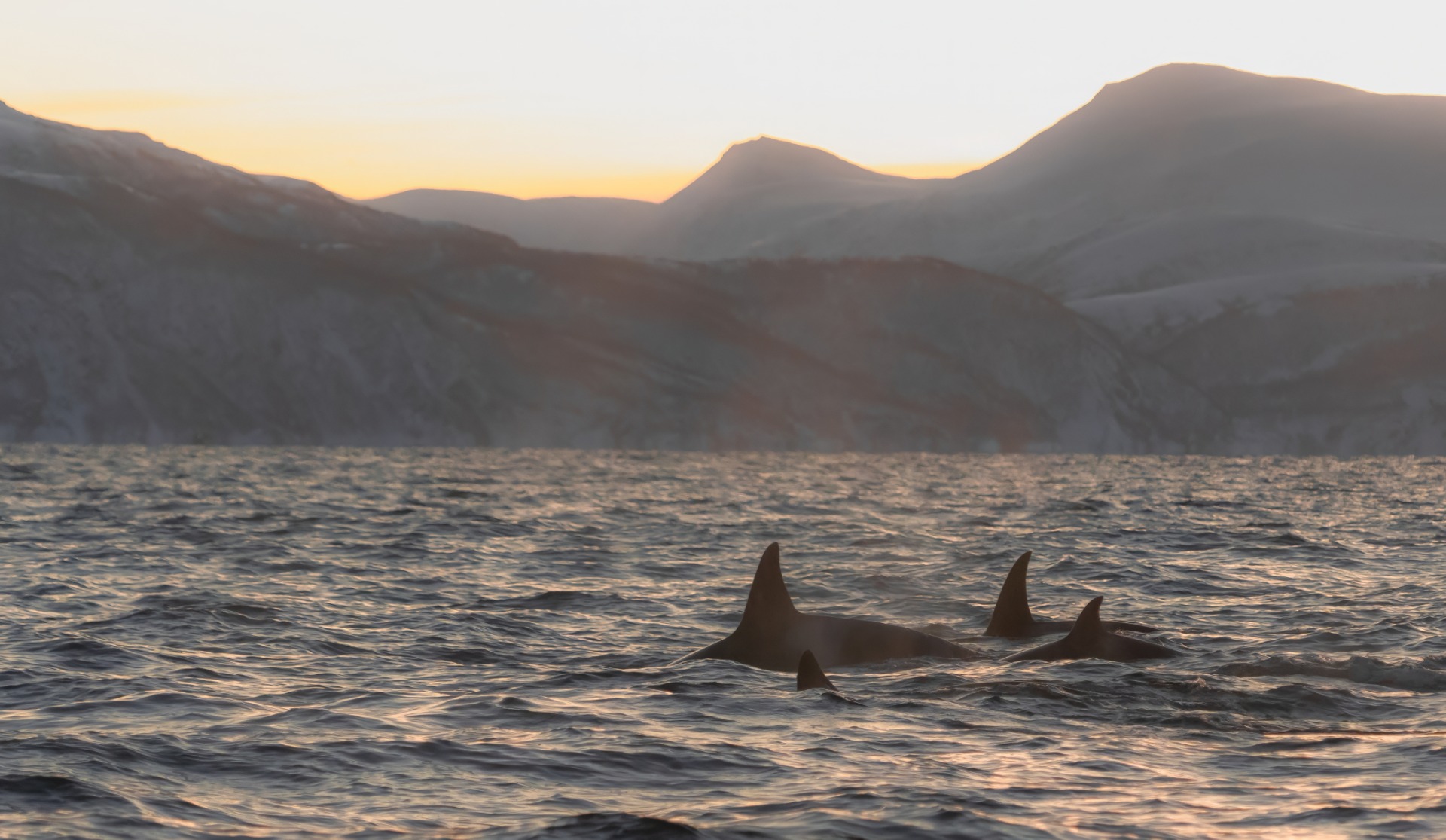Odotettu kirkkaan taivaan heijastevalo sai veden pinnan punertumaan ja myös miekkavalaat tulivat jaolle silliparvien antimista.