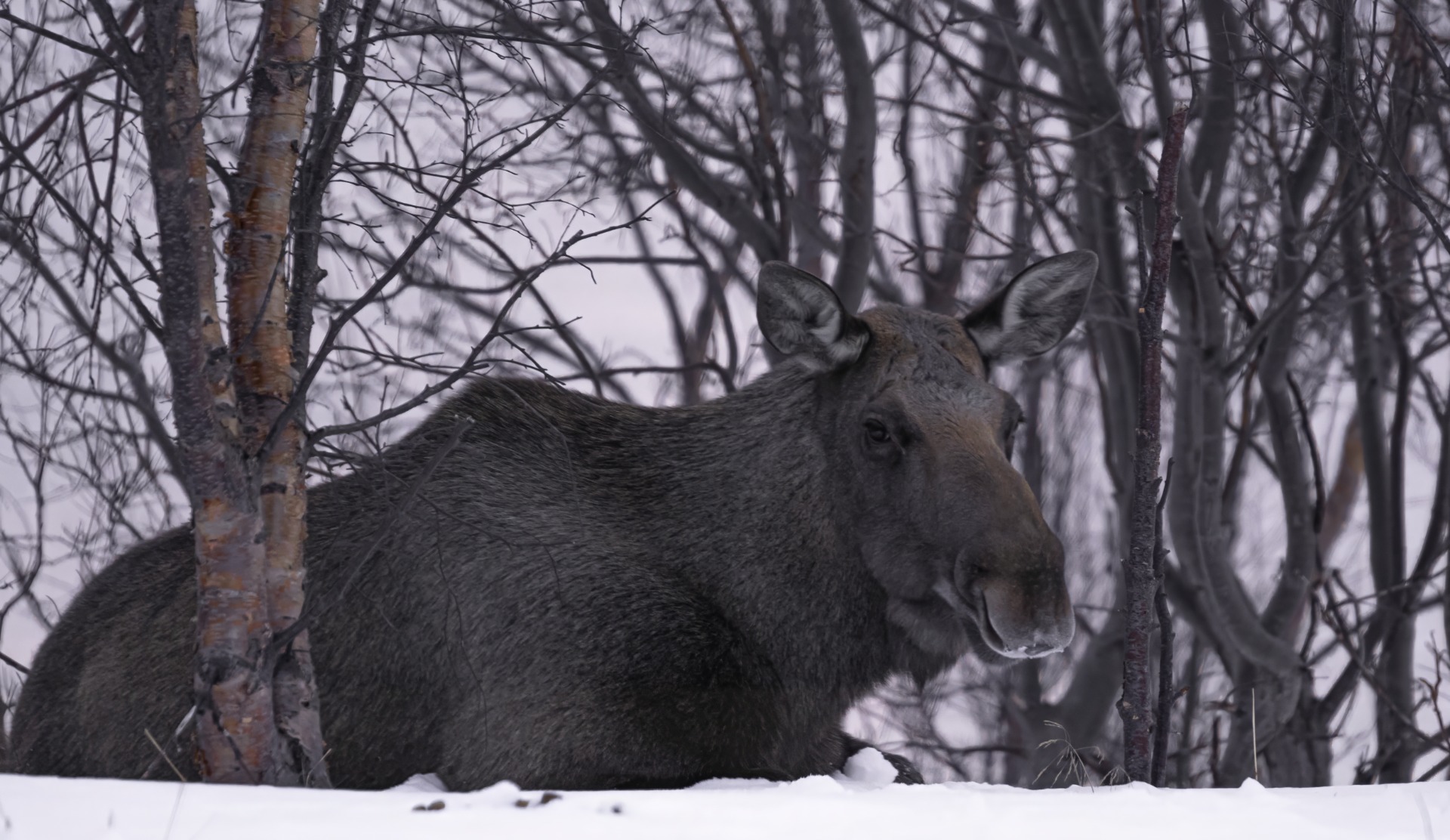 Kahlattuani rantaviivaa nousin merestä kohoavalle koivikkoterassille, edessäni makasi hirvilehmä varsin leppoisan oloisesti. Vasa söi koivikon antimia 10 metrin päässä emästään. Muutama kuva lähes vierestä ja pois