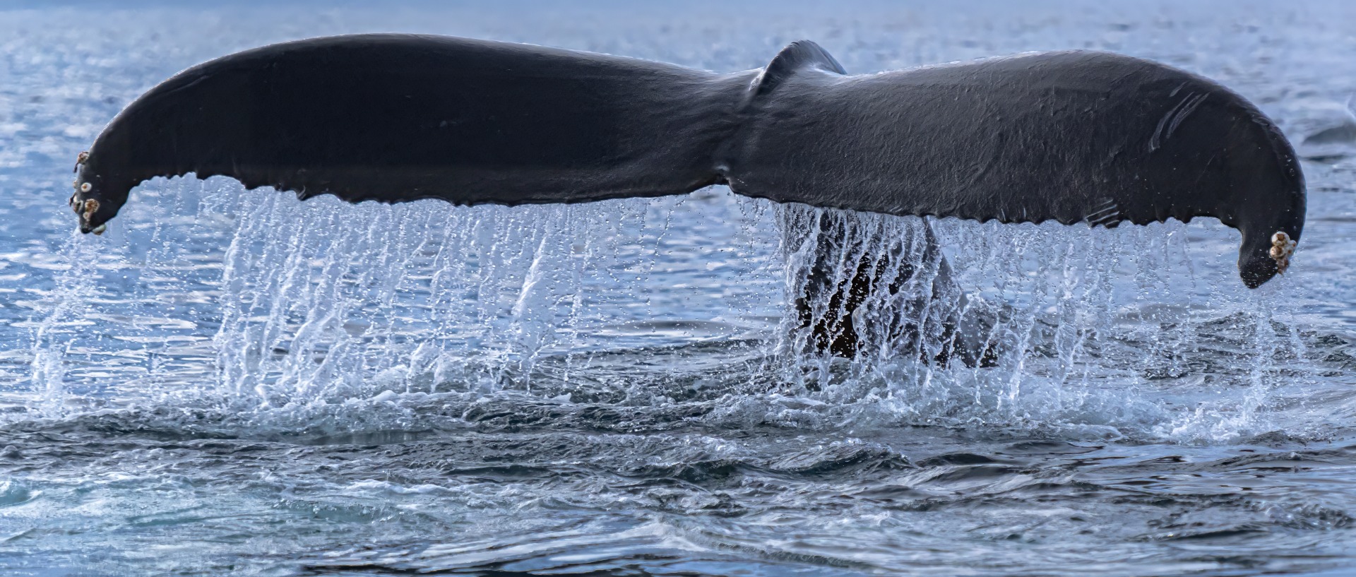 Henkeä pidätellen seuraan ryhävalaan reittiä suoraan veneen alle. Se sukeltaa sulavasti vain 20 metriä ennen paatin portin puolesta parrasta ja katoaa pyörteisiin.