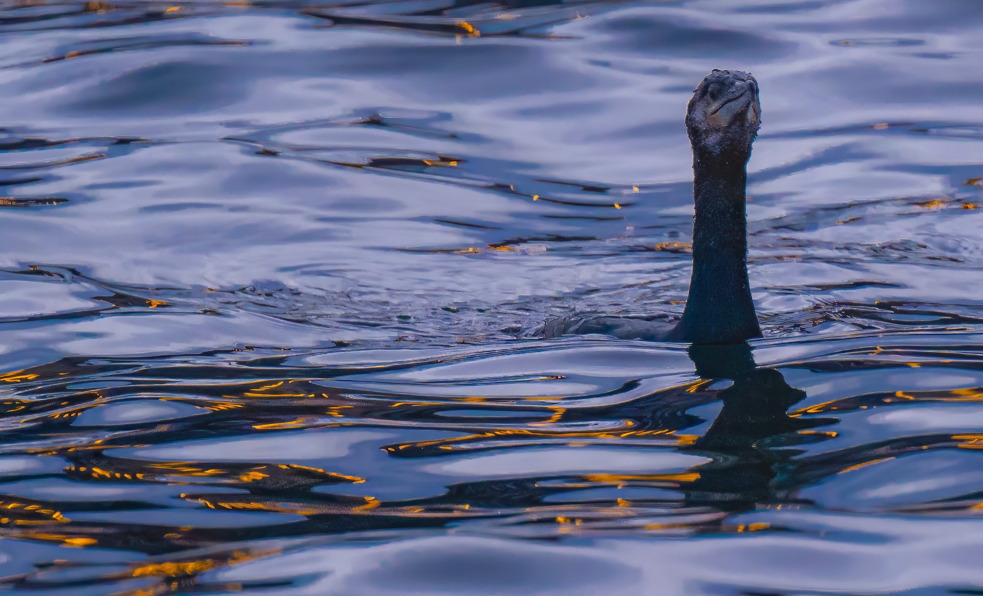 Öljymäisen tyyni vedenpinta kelpasi kyllä kalasteluun merimetsollekin.
