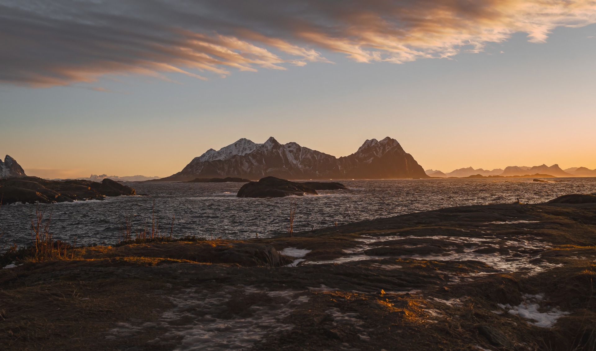 Ajattelin painella syvemmälle Lofoottien tunturilampareille etsimään merikotkia. Suojaisissa ylänköjärvissä ei tietysti ole valtavaa faunaa keskellä talvea, mutta näkymä rauhoittaa.