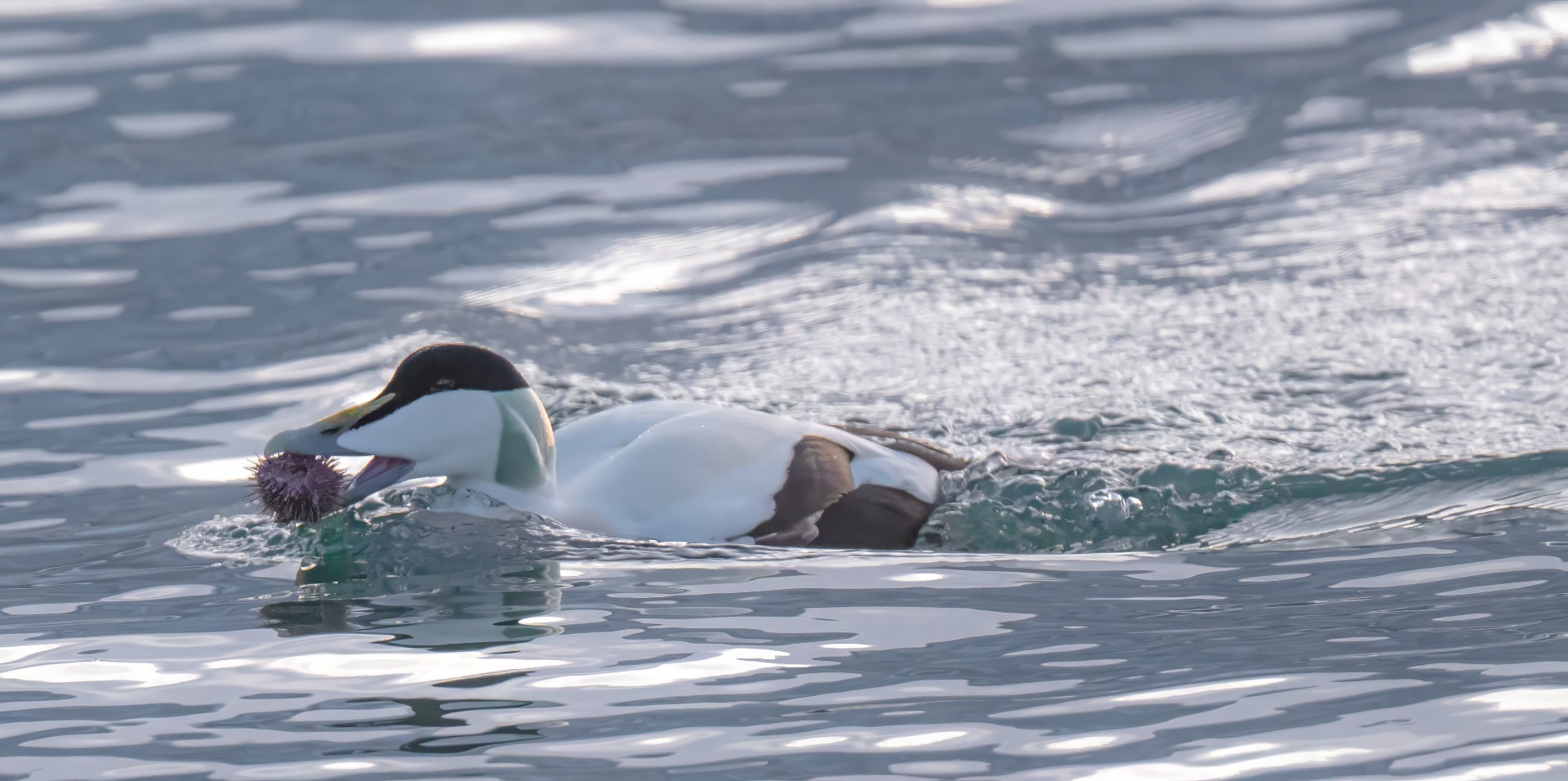 Merisiilejä pyydystävän haahkauroksen touhut olivat leppoisaa katseltavaa. Myös hieman haikeaa kun ymmärtää lajin tilanteen.